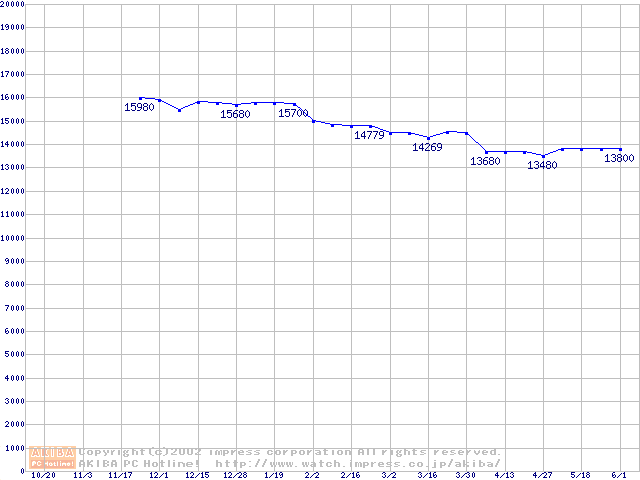 | [↓次グラフ]: | Travelstar 60GH (12.5mm,5400rpm,UltraATA/100,15GB/Platter,2MB,流体軸受)の最安値推移 |