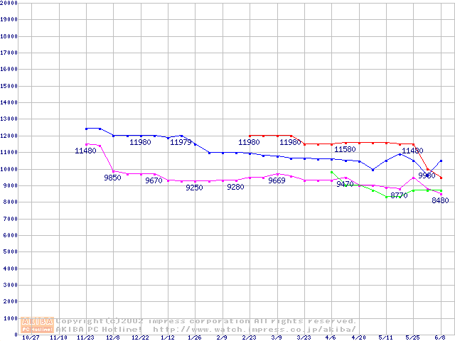 | [↑前グラフ]: | 2.5インチHDD 10GB未満(9.5mm厚)の最安値推移 |