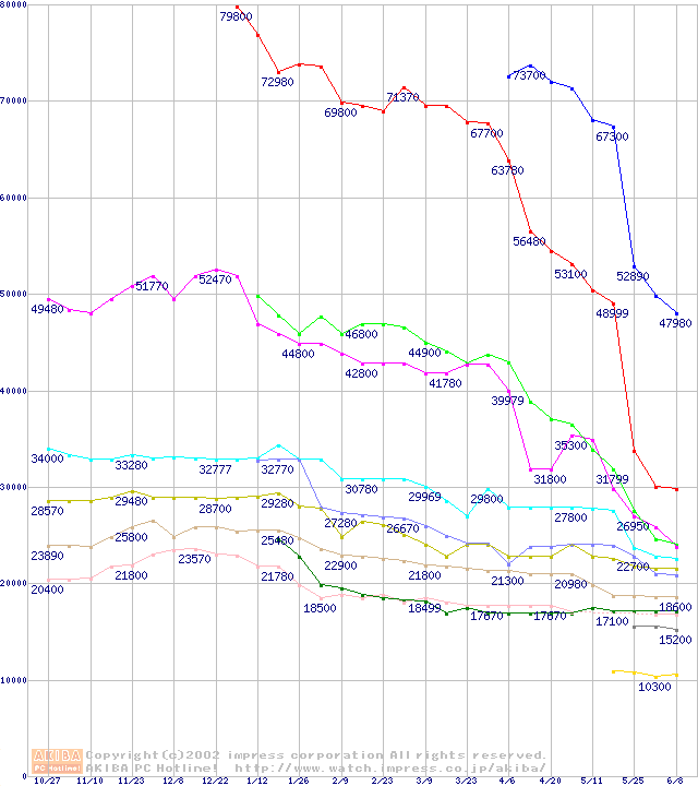 Socket 370・FSB 133MHzの最安値推移
