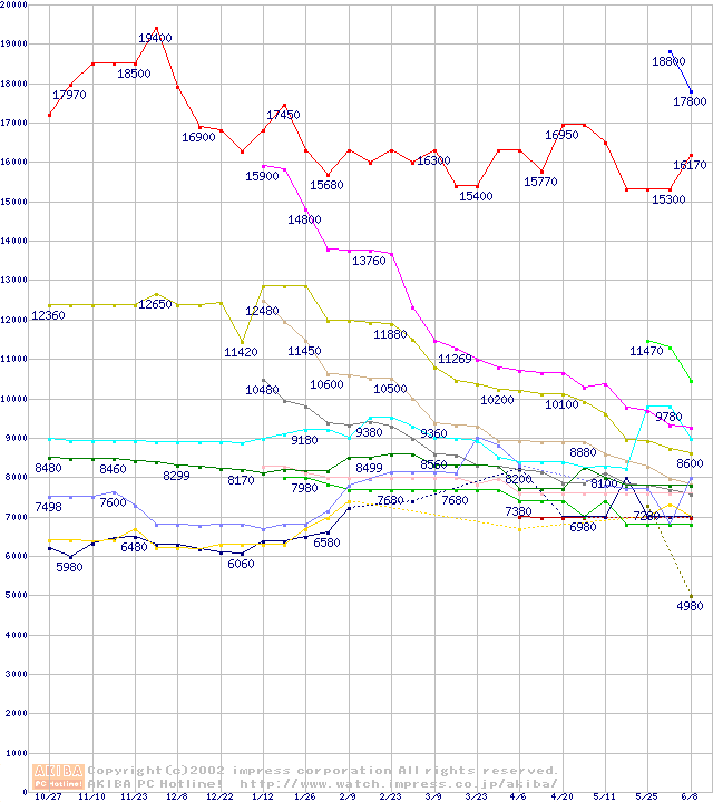 Socket 370・FSB 133MHzの最安値推移