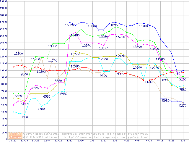 メモリ主要製品(最安値5千円~1万円未満)の最安値推移
