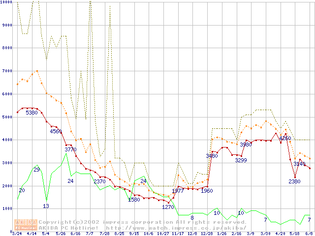 PC133 SDRAM DIMM CasLatency=2の最安値推移