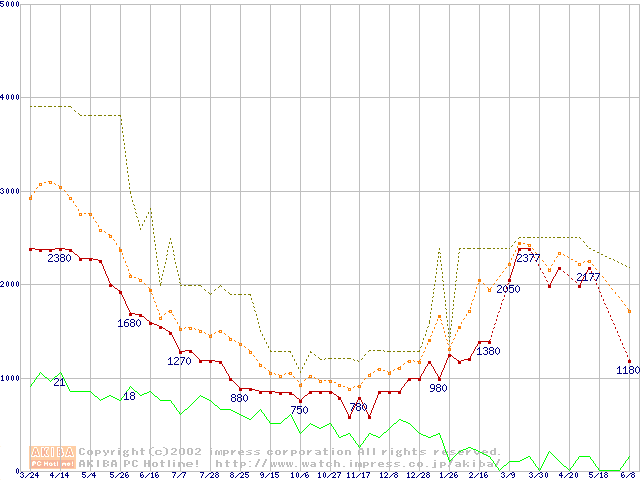 PC133 SDRAM DIMM CasLatency=3の最安値推移