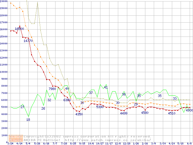 PC800-45 DRDRAM RIMMの最安値推移