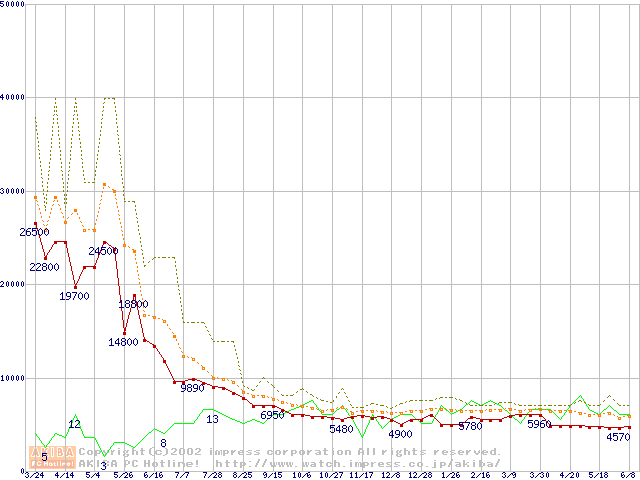 PC800-45 DRDRAM RIMM ECC対応の最安値推移