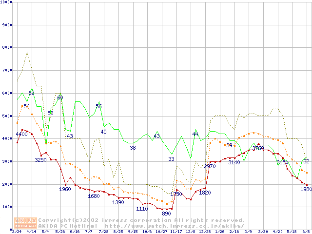メモリ主要製品の最安値推移