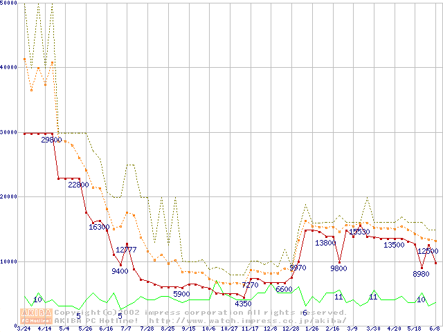 PC100 SDRAM DIMM CasLatency=2の最安値推移