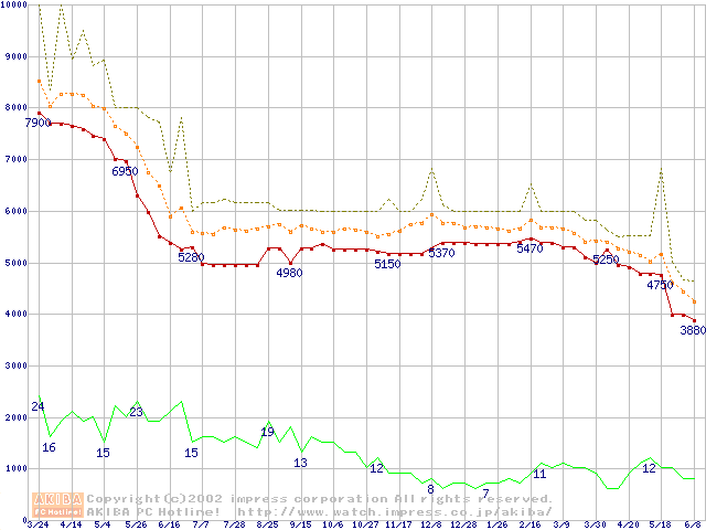 Socket A (Spitfire,PGA,FSB 200MHz,L2 64KB)の最安値推移