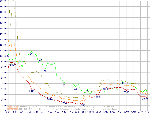 メモリ主要製品の最安値推移