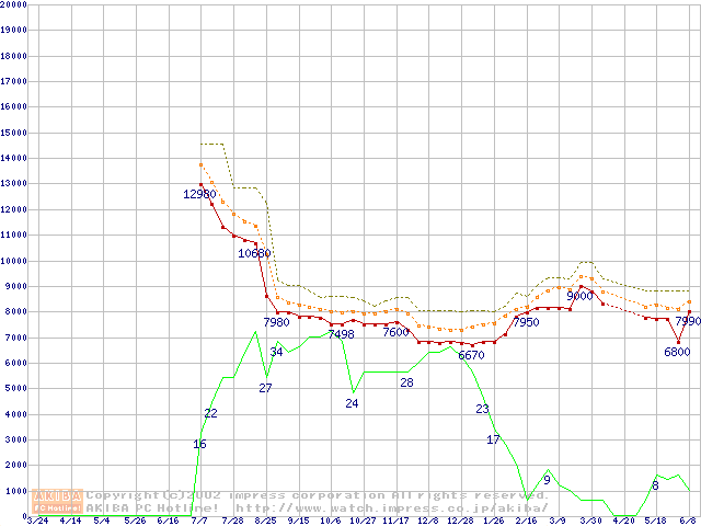 Celeron 900MHz FC-PGA リテールパッケージの価格推移