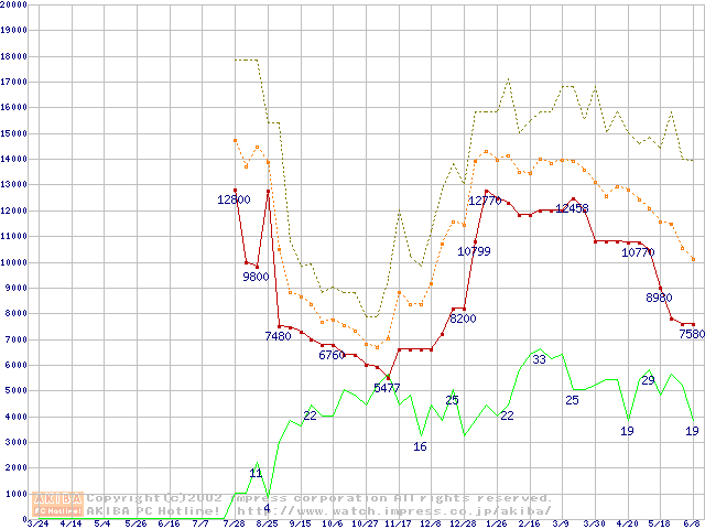 メモリ主要製品の最安値推移