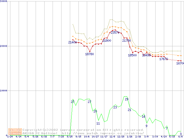 Pentium 4 1.60GHz(478pin)リテールパッケージの価格推移