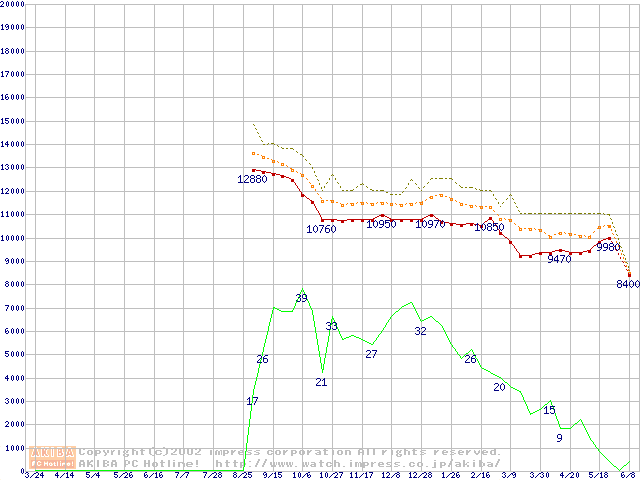 Celeron 1.10GHz FC-PGA リテールパッケージの価格推移