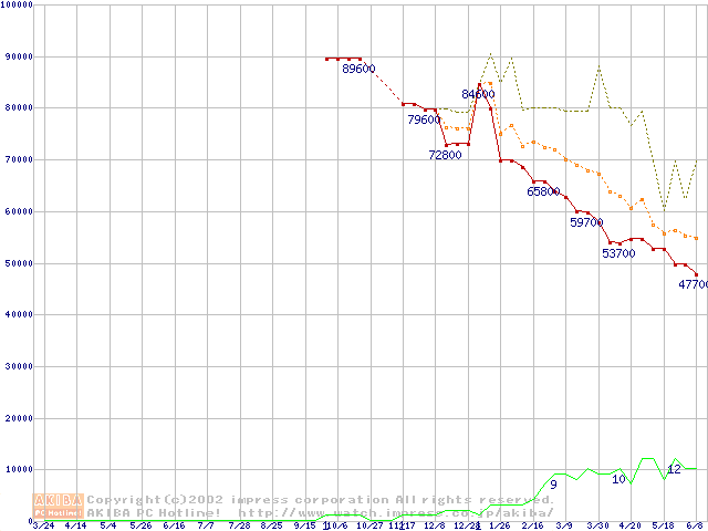 メモリ主要製品の最安値推移