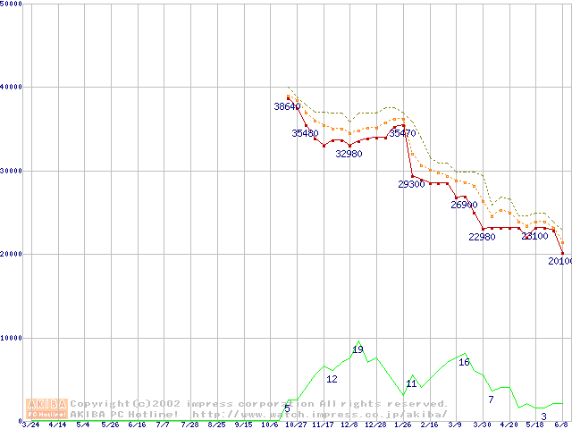 Socket A (Palomino,OPGA,FSB 266MHz,L2 256KB)の最安値推移