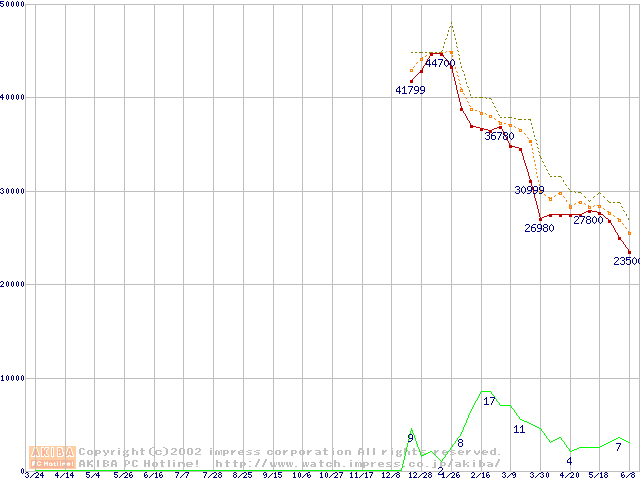 Socket A (Palomino,OPGA,FSB 266MHz,L2 256KB)の最安値推移