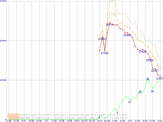 メモリ主要製品の最安値推移