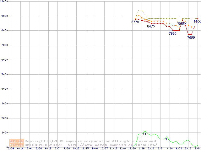 Socket 370 (PGA,FSB 133MHz,L2 64KB)の最安値推移