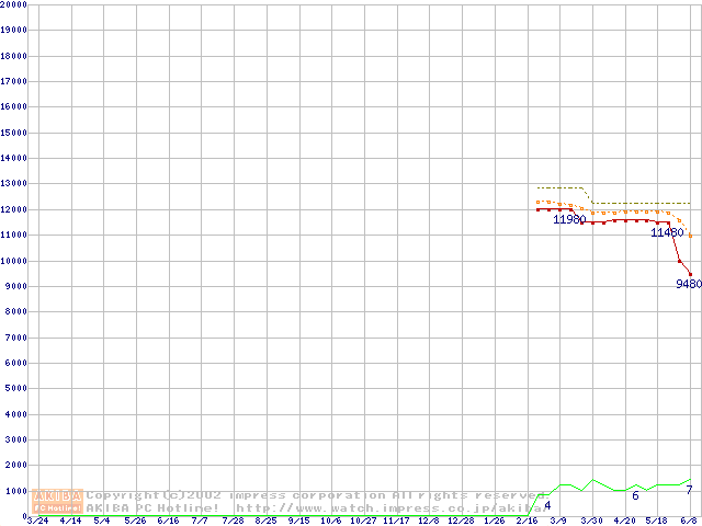 MHRシリーズ (9.5mm,4200rpm,UltraATA/100,2MB,20GB/プラッタ,流体軸受)の最安値推移