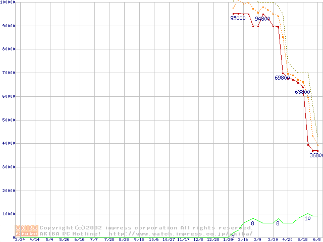 Socket 603 (micro-PGA,L2 512KB,Hyper-Threading,Prestonia)の最安値推移