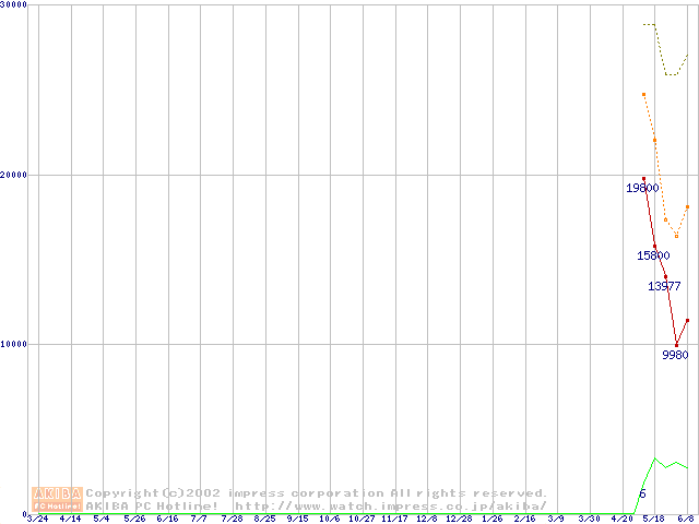 PC3200(DDR400) DDR SDRAM DIMMの最安値推移