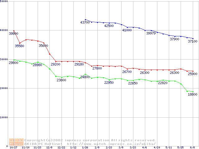 | [↑前グラフ]: | Socket 603 (micro-PGA,L2 256KB,Foster)の最安値推移 |