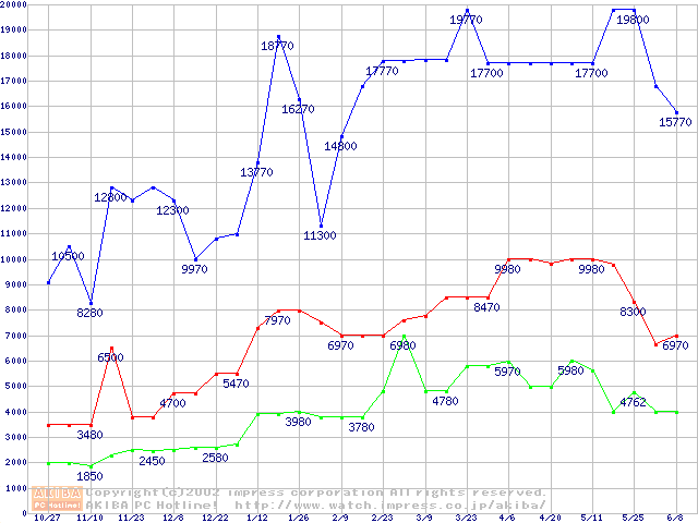 | [↑前グラフ]: | PC100 SDRAM DIMM CasLatency=2の最安値推移 |