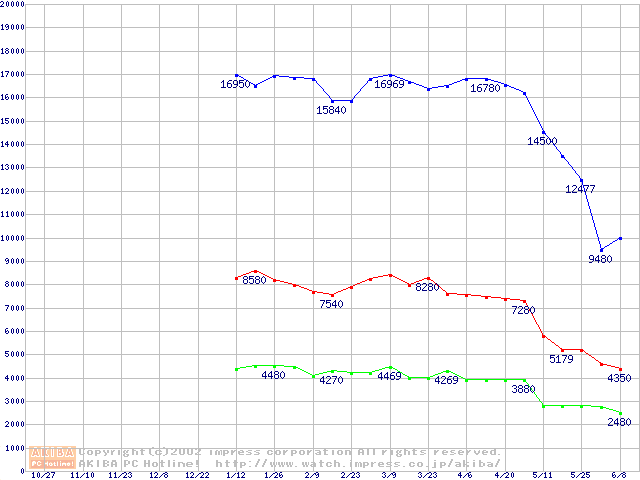 | [↓次グラフ]: | PC2700(DDR333) DDR SDRAM DIMMの最安値推移 |