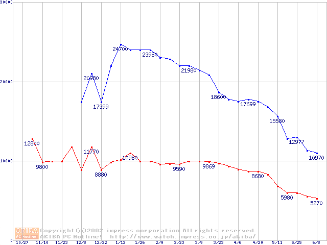 | [↓次グラフ]: | PC3000(DDR366) DDR SDRAM DIMMの最安値推移 |