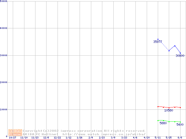 | [↓次グラフ]: | PC800-45 DRDRAM RIMM ECC対応の最安値推移 |