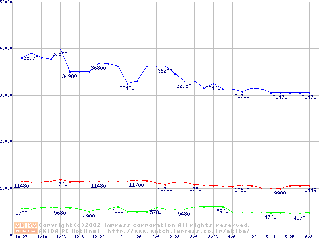 | [↓次グラフ]: | PC800-40 DRDRAM RIMM ECC対応の最安値推移 |