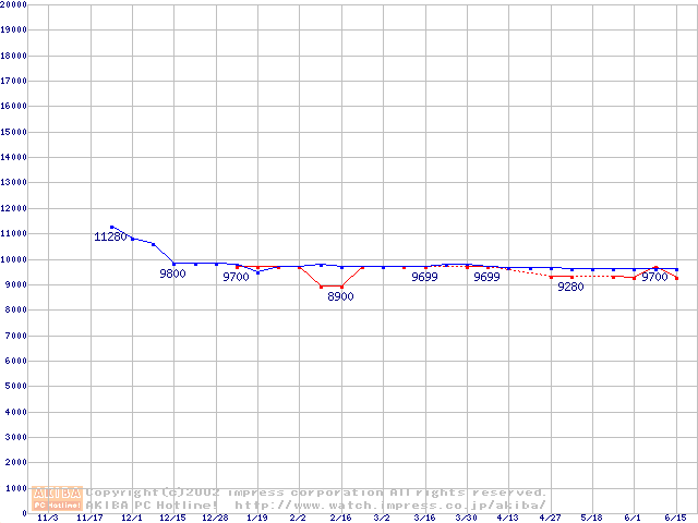 | [↓次グラフ]: | 2.5インチHDD 10GB~20GB未満(9.5mm厚)の最安値推移 |