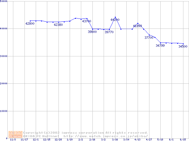 | [↑前グラフ]: | 2.5インチHDD 40GB~50GB未満(9.5mm厚)の最安値推移 |