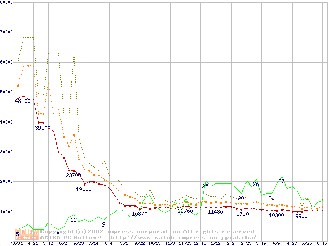 PC800-45 DRDRAM RIMM ECC対応の最安値推移
