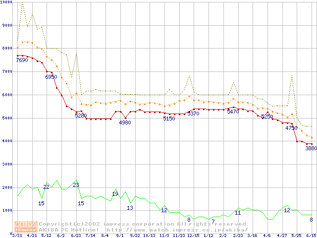 Socket A (Spitfire,PGA,FSB 200MHz,L2 64KB)の最安値推移