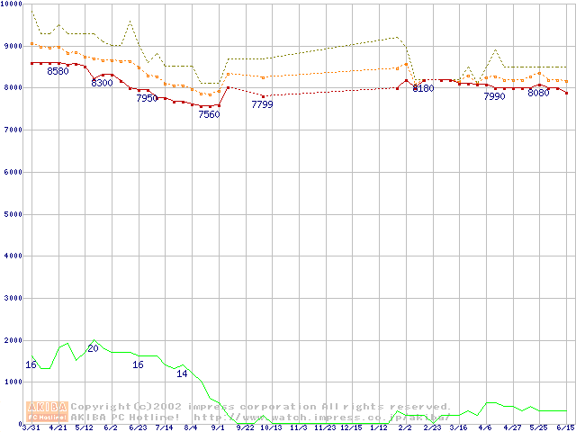 U5 (5400rpm,UltraATA/100 512KB)の最安値推移