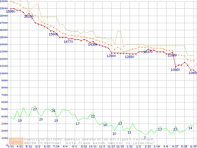 WD Caviar (5400rpm,UltraATA/100)の最安値推移