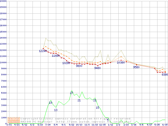 DiamondMax D540X (5400rpm,UltraATA/100,40GB/Platter)の最安値推移
