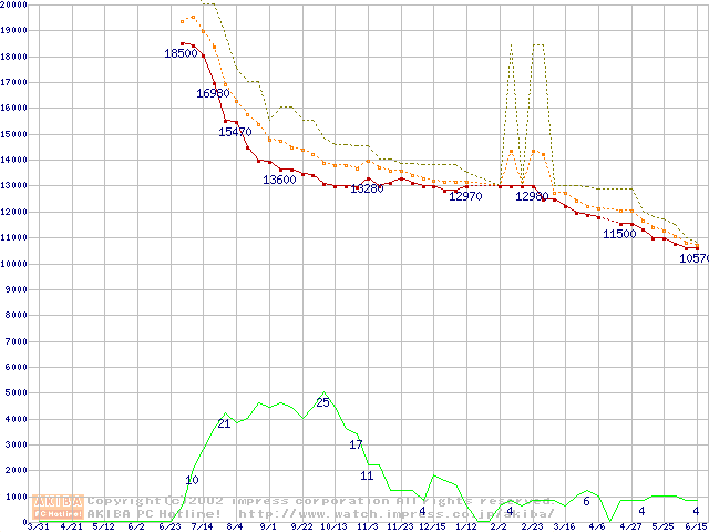 DiamondMax D540X (5400rpm,UltraATA/100,40GB/Platter)の最安値推移