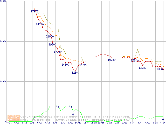 Socket A (Thunderbird,PGA,FSB 200MHz,L2 256KB)の最安値推移