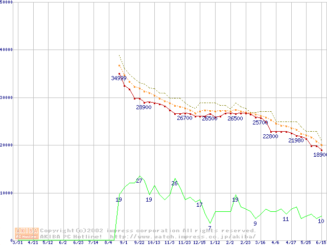 WD Caviar (7200rpm,UltraATA/100,2MB)の最安値推移