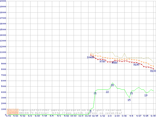 DiamondMax Plus D740X (7200rpm,UltraATA/133,40GB/Platter,流体軸受)の最安値推移