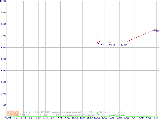 Socket 370 (PGA,FSB 133MHz,L2 64KB)の最安値推移