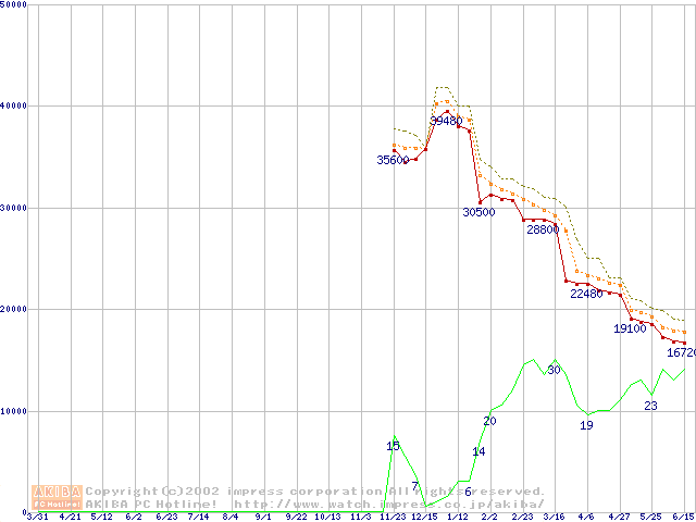 Athlon XP 1900+ (1.6GHz) リテールパッケージの価格推移