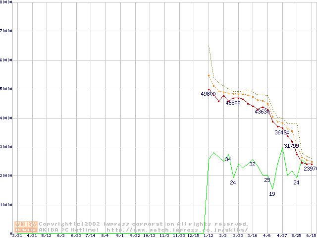 Pentium 4 2A GHz リテールパッケージの価格推移
