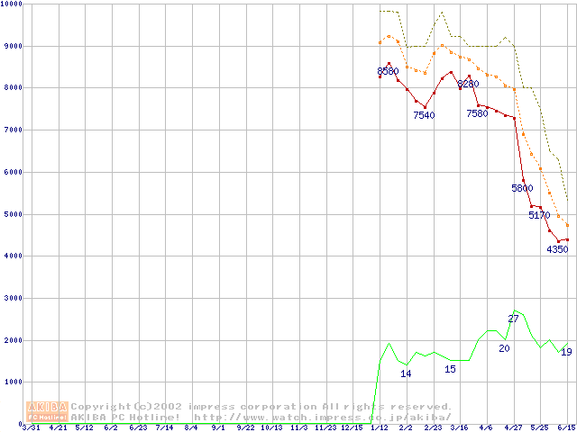 メモリ主要製品の最安値推移