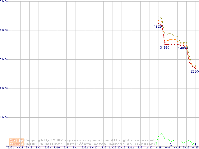 Socket A (Palomino,OPGA,FSB 266MHz,L2 256KB)の最安値推移