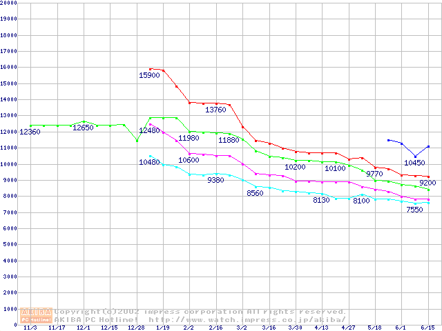 | [↑前グラフ]: | Socket 478 (micro-PGA,FSB 400MHz,L2 128KB,Willamette)の最安値推移 |