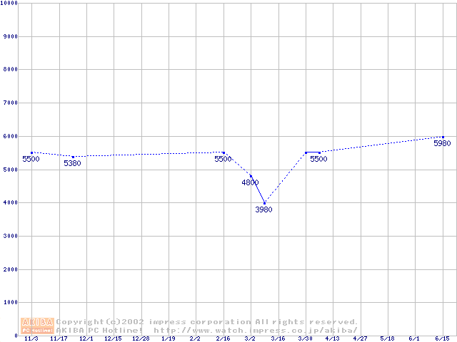 | [↑前グラフ]: | Socket 370 (FC-PGA,FSB 100MHz,L2 128KB)の最安値推移 |