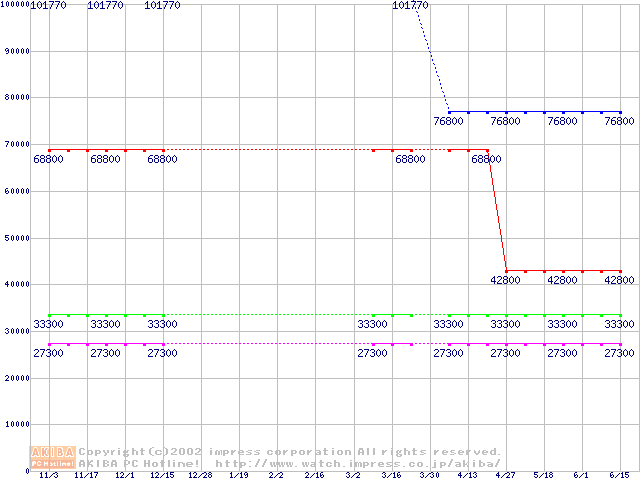 | [↑前グラフ]: | Slot 1 (SECC2,FSB 100MHz,L2 256KB)の最安値推移 |